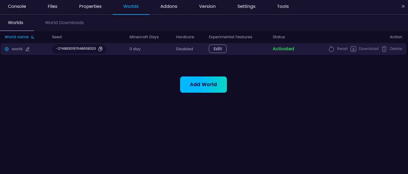 When the files have been transferred, make sure to create a new world (or upload the same one you used locally).