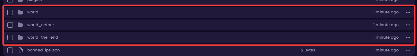Unlike Spigot & Bukkit server types, Vanilla and Modded servers usually have 1 world file that contains the entirety of the world.
