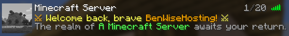 You can change the server’s icon to your liking with the favicon block. For more information on that, I recommend taking a look at the Favicon wiki made by the ServerListPlus themselves, as it goes into more in-depth about Favicons.